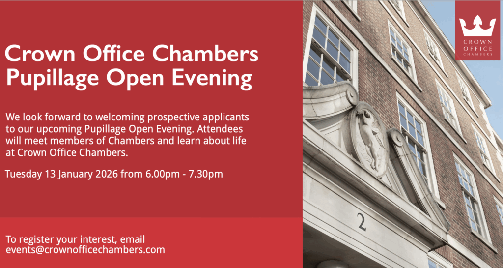 Crown Office’s Pupillage Evening will take place on Tuesday 13 January 2026 from 6.00pm – 7.30pm, with drinks and nibbles provided.