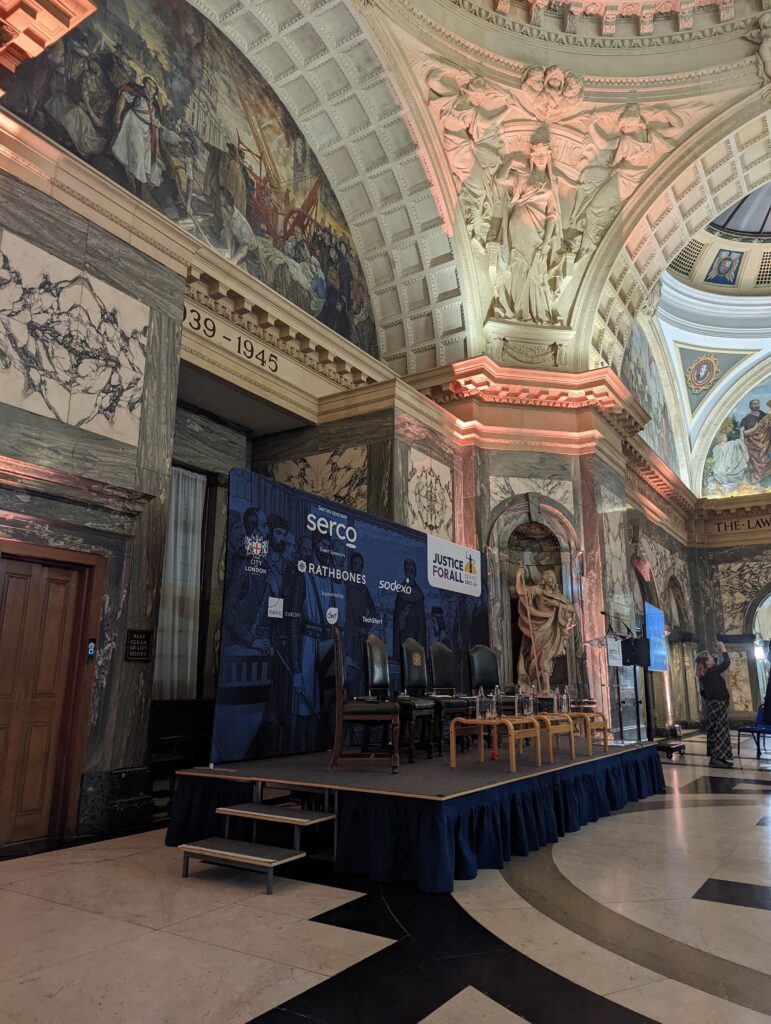 The talks began with Robert Hughes-Penney extoling the virtues of the City of London, the Corporation that he has recently risen to the top of, and announcing the beginning of their Justice for All project, which this event was the grand opening ceremony of. Hughes-Penney proclaimed that the Justice For All talks would be a holistic look at contemporary Justice, this talk would stake out the status quo, where we begin with justice, and the coming talks will examine the relationship between justice and the accused, victims, survivors, prison leavers, and finance. One defining take-away is Robert’s argument that this programme will argue for the ‘economic sense’ of Justice For All, this makes sense for the audience – mostly the inheritors of the 13th century barons, mostly the wealthy and powerful, mostly those who could do something about our crumbling institutions.