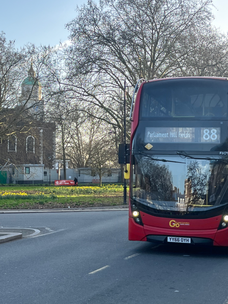 This omnibus, and its famous passenger, is memorialised in one of Clapham Old Town’s central squares, ‘The Polygon’, where a bus terminus stores a number of 88 buses. One (pictured) is currently bearing the image of one of Clapham’s most famous modern residents, Margot Robbie, as Kathy in Emerald Fennel’s adaptation of Wuthering Heights. A sign in the centre of the Polygon proclaims “the phrase ‘the man on the Clapham Omnibus’” epitomises Clapham’s ‘commuting past’; the handsome building that once housed the Clapham public library has since been converted into the Omnibus Theatre.